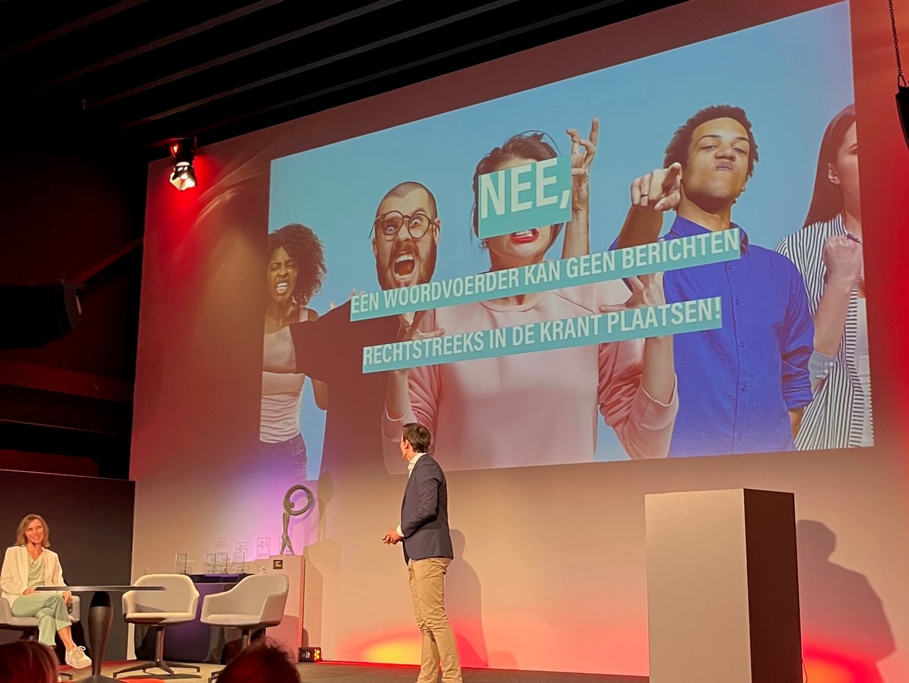 Sara Vercauteren, managing director, en Sander Vanlouwe, pr-consultant, van Bepublic Group maakten de resultaten van de enquête bekend tijdens de jaarlijkse Nacht van de Woordvoerder.