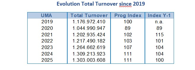 L’année 2025 marque la fin d’une série de 4 années successives de croissance du chiffre d’affaires global UMA (+11% depuis la fin de la pandémie).