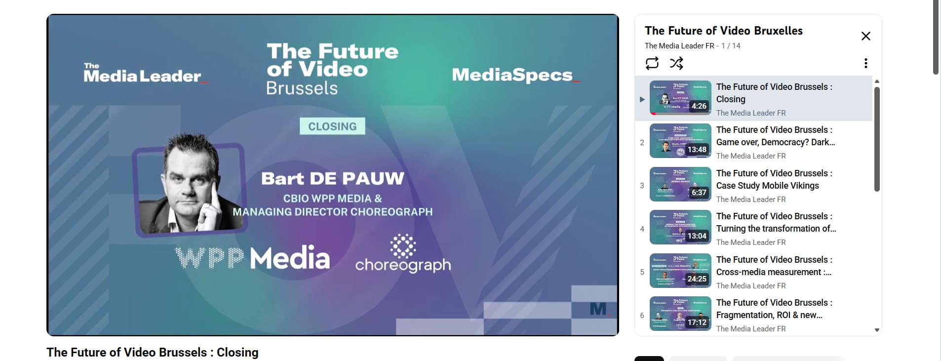 Après des éditions à Paris et Londres, The Future of Video s’est tenu pour la première fois cette année à Bruxelles. Organisé par The Media Leader et MediaSpecs, l’événement a rassemblé plus de 160 professionnels des médias venus de Belgique et de l’étranger pour explorer l’avenir de la télévision, du streaming et de la télévision connectée.